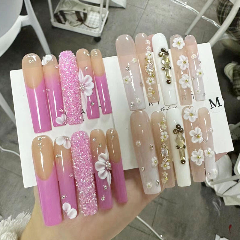Calcomanías de agua de alta calidad para uñas Manicura de ataúd largo Tres modelos Diseño hecho a mano para uso con los dedos