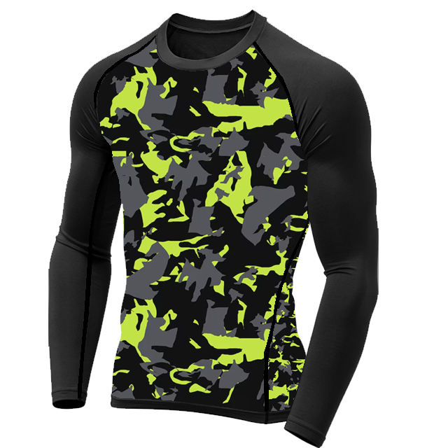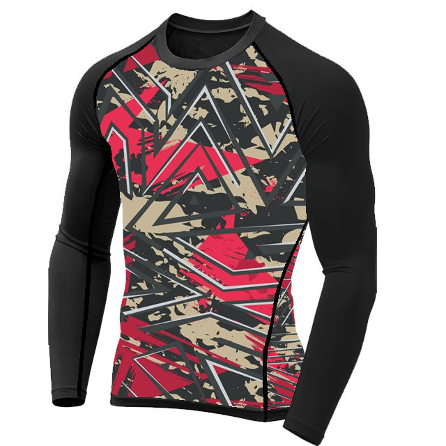 Alta calidad MMA Sublimado hombres Rash Guard Poliéster spandex mezcla tela hombres más cálido manga larga hombres Rash Guard