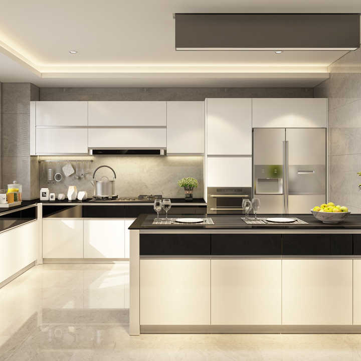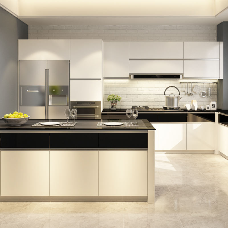 Gabinetes de Cocina Modulares Multifuncionales de Alta Calidad, Personalización General del Gabinete, Encimera de Vidrio Templado Simple