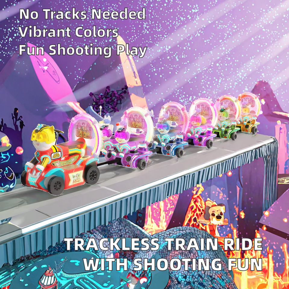 Tren de Fibra de Vidrio de Alta Calidad con Diseño de Dibujos Animados, Asientos Oscilantes, Videojuegos, Juego Eléctrico para Niños, Centro Comercial, 2500W, 6-7 años