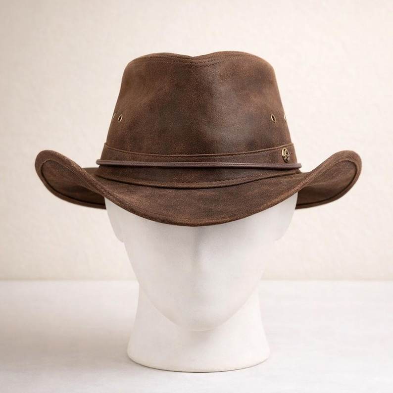 Sombrero vaquero de cuero marrón hecho a mano de alta calidad, sombrero de rancho occidental para hombres y mujeres, regalo.