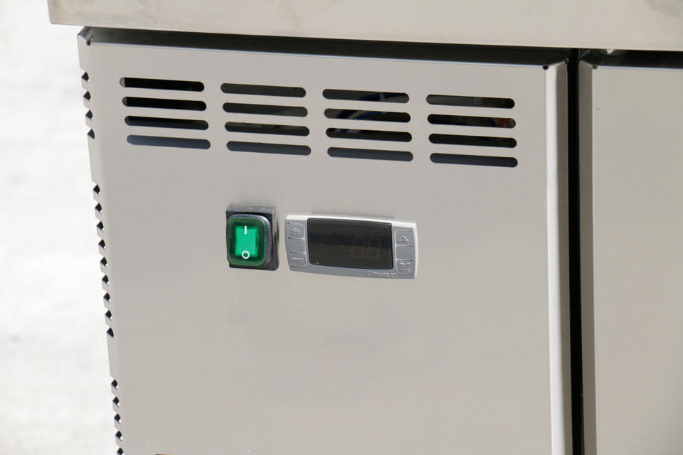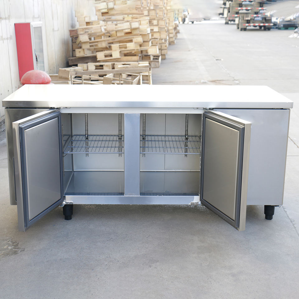 Mesa de Trabajo Horizontal de Acero Inoxidable de Alta Calidad para Refrigeración de Alimentos, Preparación de Pizza y Ensaladas de 382L.