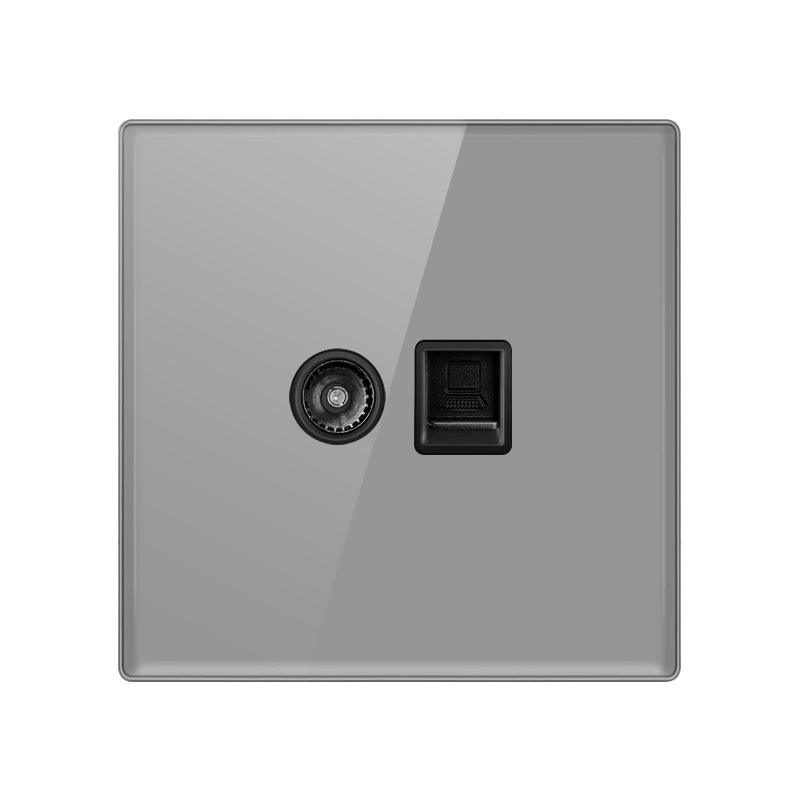 Enchufe de Pared Estándar del Reino Unido de Alta Calidad, Placa de Enchufe para TV de 10A, Panel ABS Gris Esmerilado con 2 Tomas