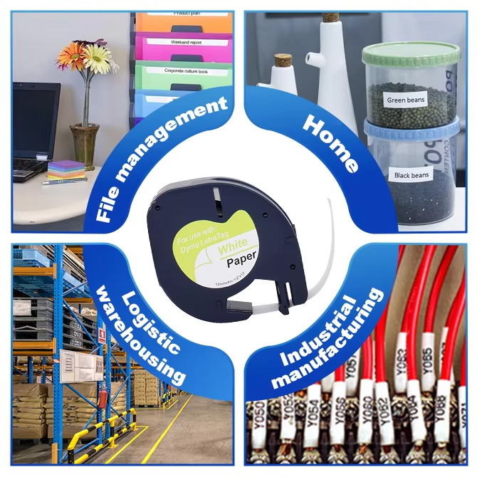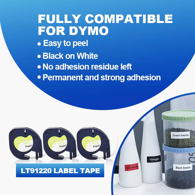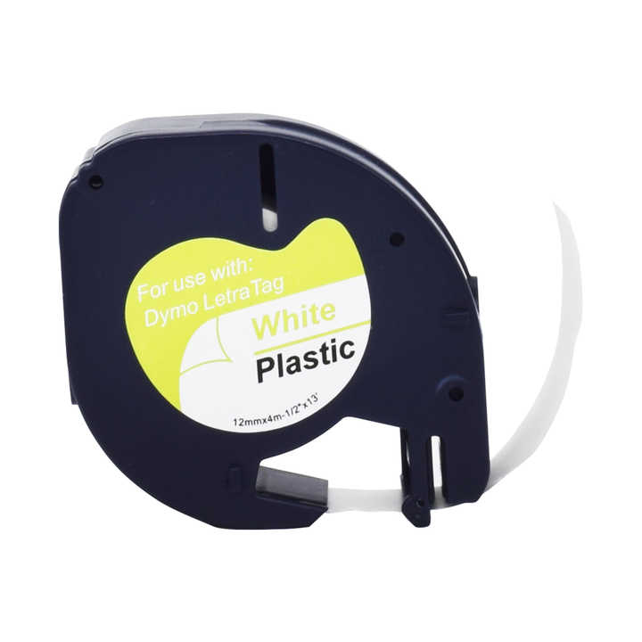 Etiquetas de Papel Impermeables de Alta Calidad Compatibles con 91200/91330/91220/59421 12 mm x 4 m Blanco y Negro DYMO Letratag 100T