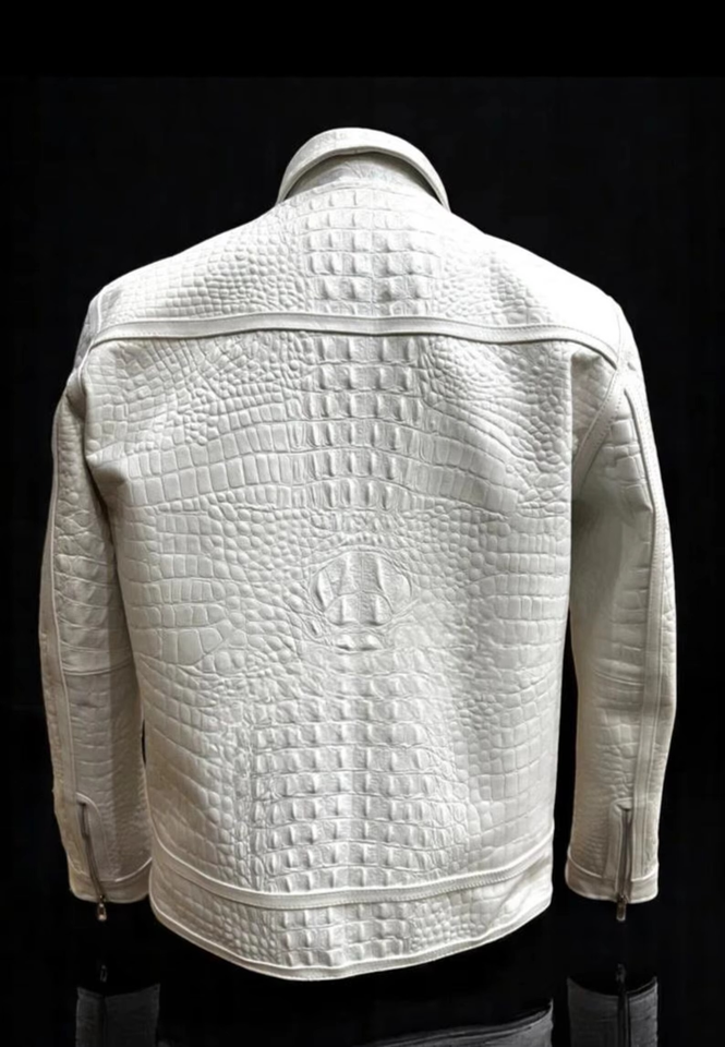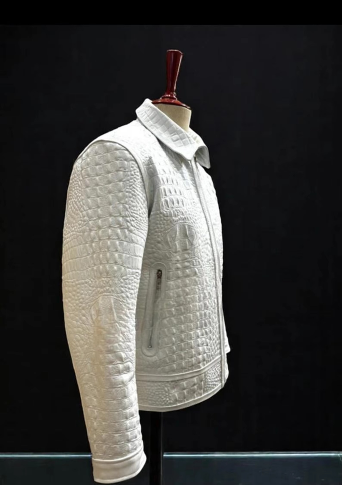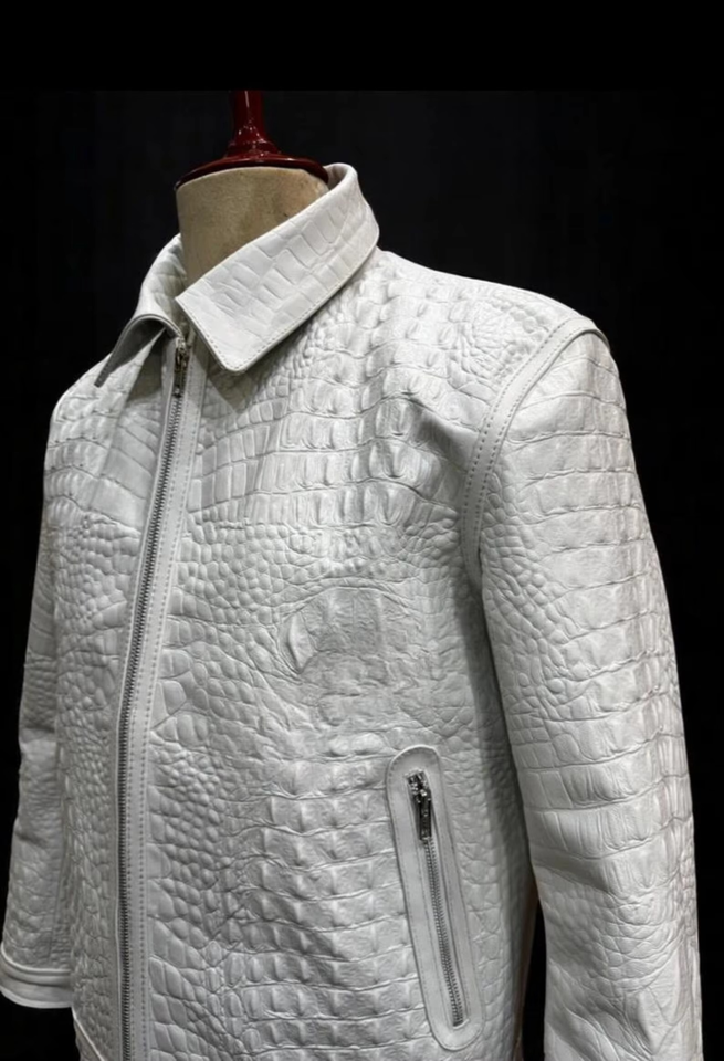 Chaqueta de cuero vacuno original con relieve de cocodrilo de alta calidad, con estructura resistente, diseño rico y comodidad elegante.