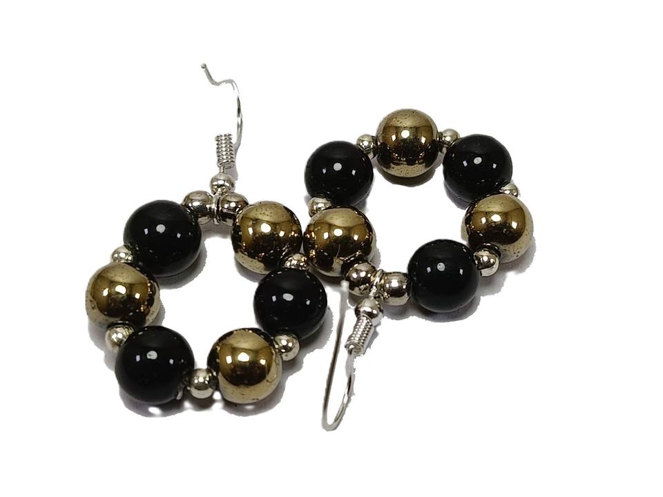 Material:black & pyrite beads earrings