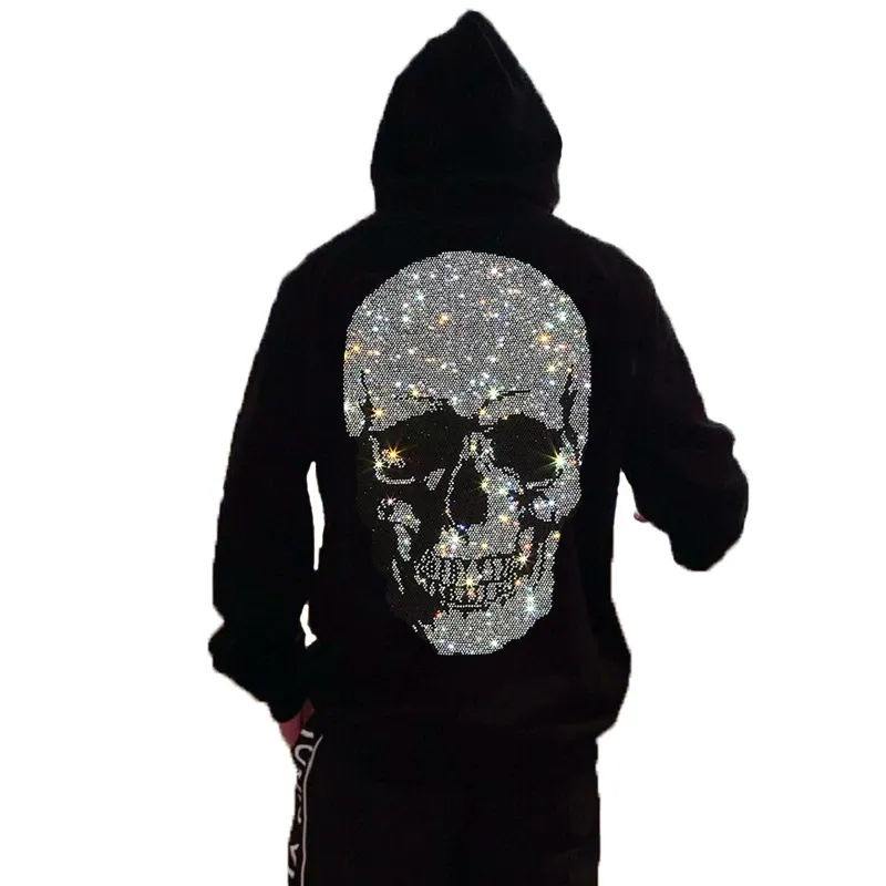 Alta calidad para personalizar Rhinestone Logo Hoodie Hombres Zip up Moda Rhinestone Hoodie Full Zip up Hoodie Rhinestone