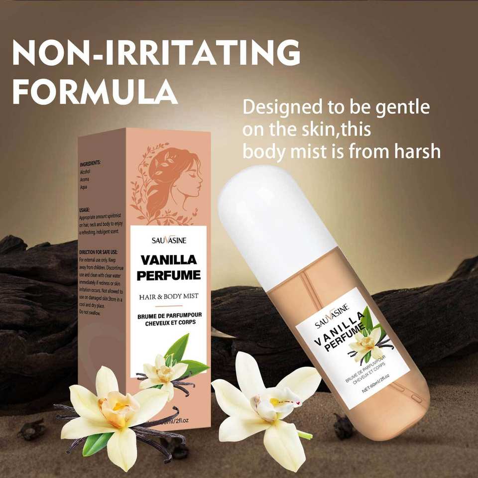 Perfume hidratante, refrescante y duradero de alta calidad, spray orgánico de vainilla para cabello y cuerpo.