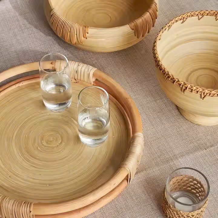 Ensaladera de alta calidad hecha de bambú y Ratán, decorativa o para sujetar aperitivos, cuenco para baño de pies