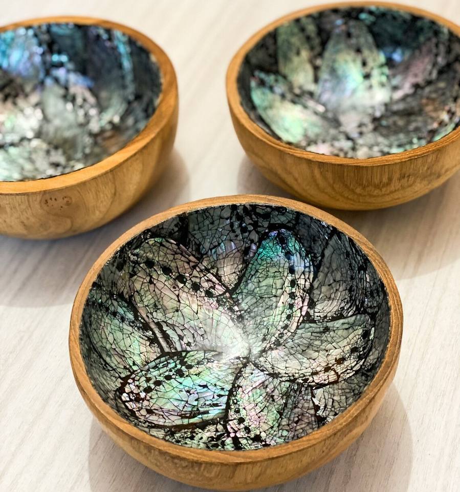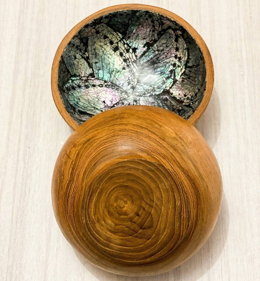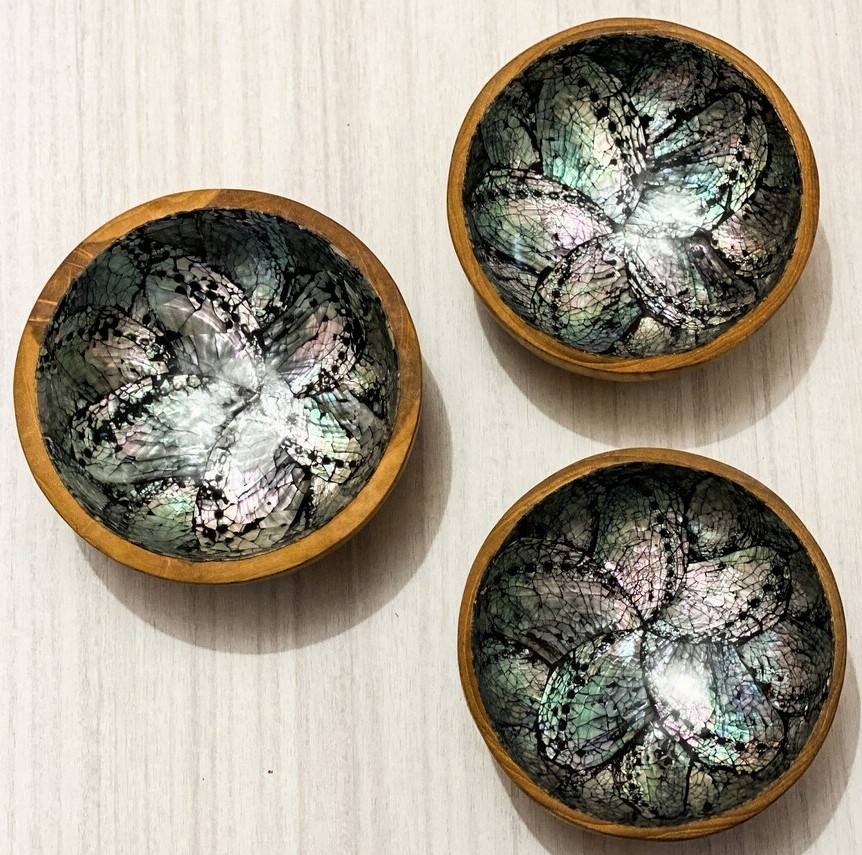 Product name:Wooden Round Salad Bowl With Shell Inlay
