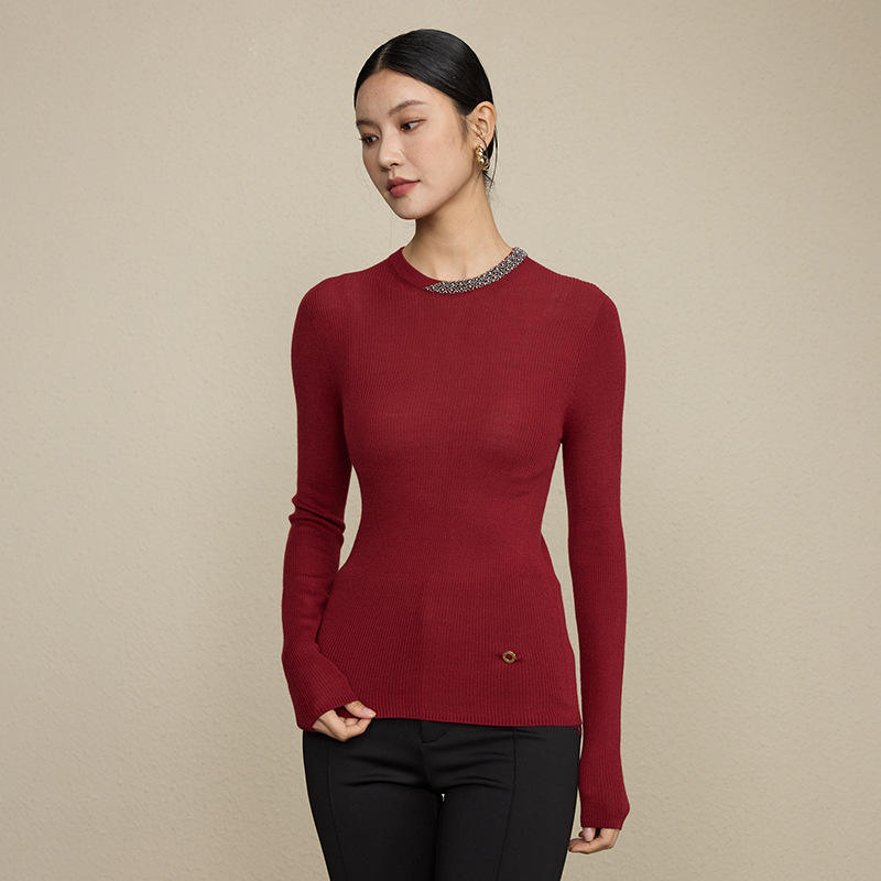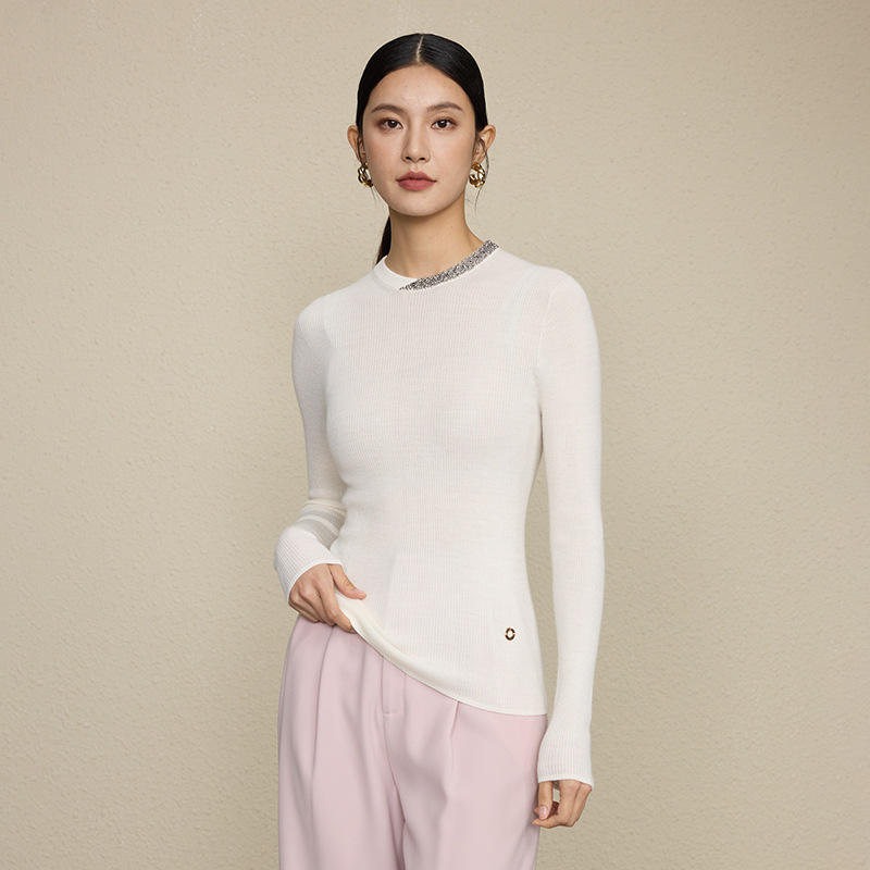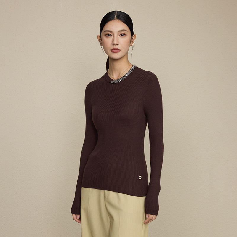 Suéter de punto de mujer de alta calidad cuello redondo de un solo pecho suelto y delgado, suéter versátil chaqueta de mujer