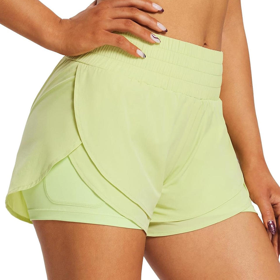 Pantalones cortos de verano 2 en 1 de alta elasticidad para mujer, pantalones cortos atléticos personalizables con capa interior, ropa deportiva, proveedor de etiqueta privada