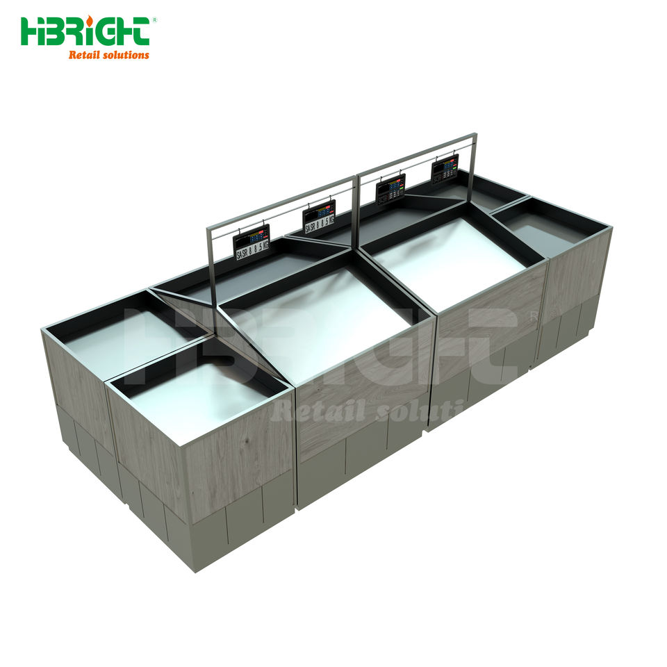 Soporte de exhibición de metal de alta resistencia, estante para frutas y verduras frescas de supermercado para exhibir productos frescos