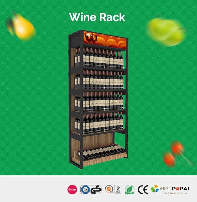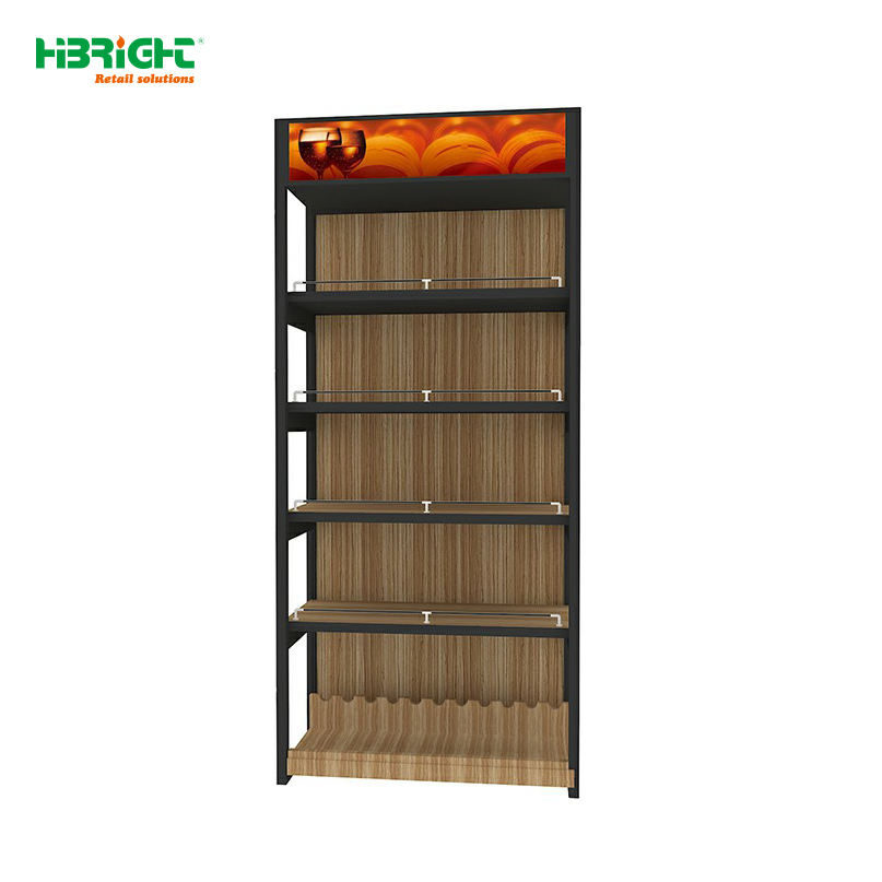 Exhibidor de Vino de Múltiples Niveles Highbright con Estantes de Madera, Soportes Inclinados para Botellas y Letrero Superior para Tiendas de Vino y Líquores