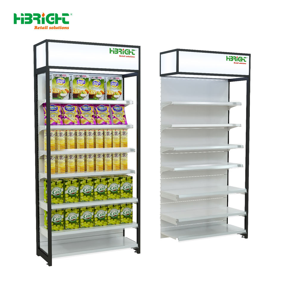 Estante de Exhibición Popular de Alta Luminosidad con Letrero Superior para Supermercados y Tiendas Minoristas