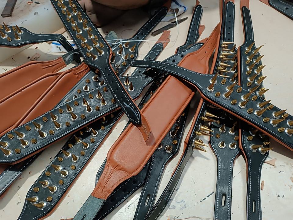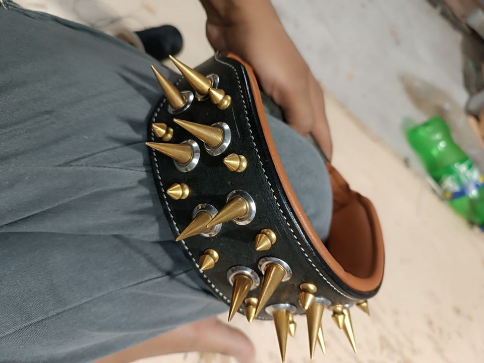Collar de perro de cuero genuino con patrón sólido hecho a mano de la más alta calidad personalizado con acolchado suave y decoración de tachuelas