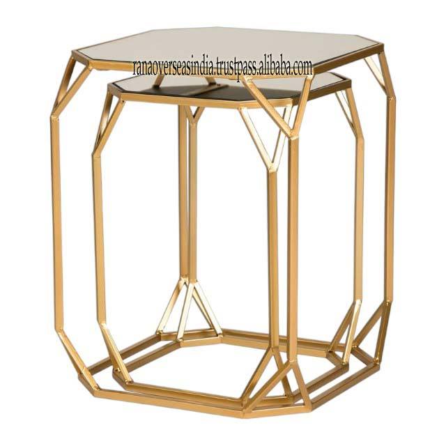 Palabra clave:Tabla de vidrio superior con marco de metal dorado Mesa lateral de acento decorativo