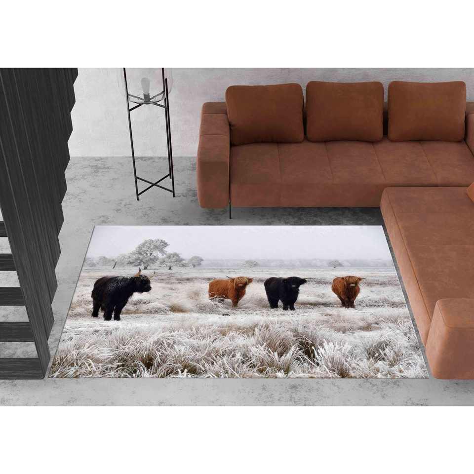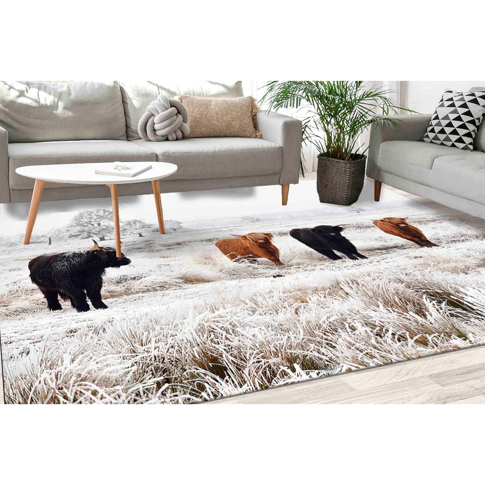Alfombra de Vaca Highland: Decoración Rústica Impresa en 3D, Alfombra de Chenilla