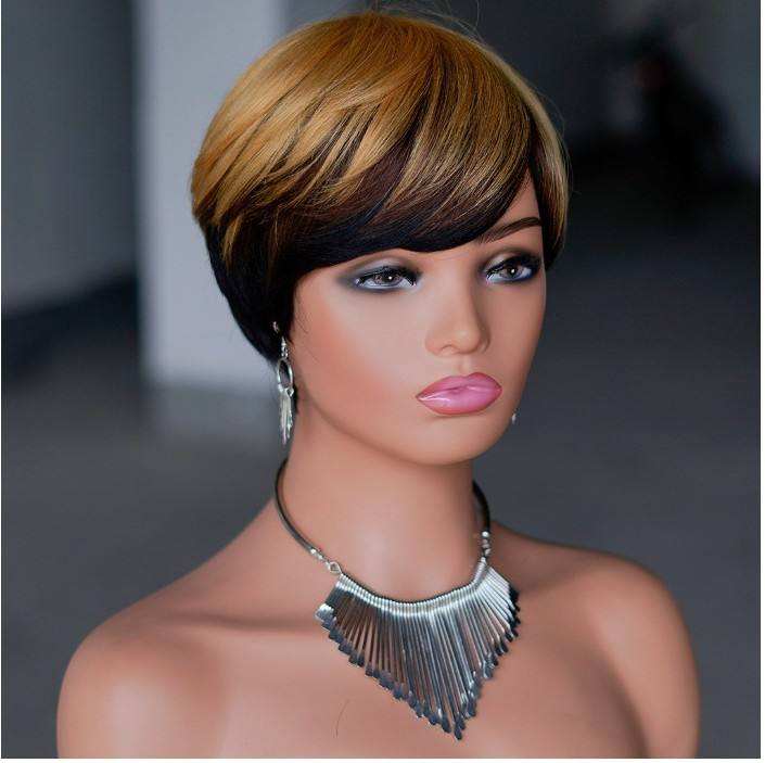 Peluca Corta Pixie con Reflejos de Color, Cabello Humano Natural, Línea de Cabello Natural, 100% Cabello Humano Real, Corte Pixie Elegante para Mujer, Resistente al Calor