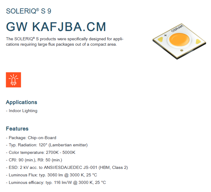 Resalte GW 1/2 CRI90 3000LM 26W Osrams Cob Blanco 2700K 3000K 3500K 4000K 5000K