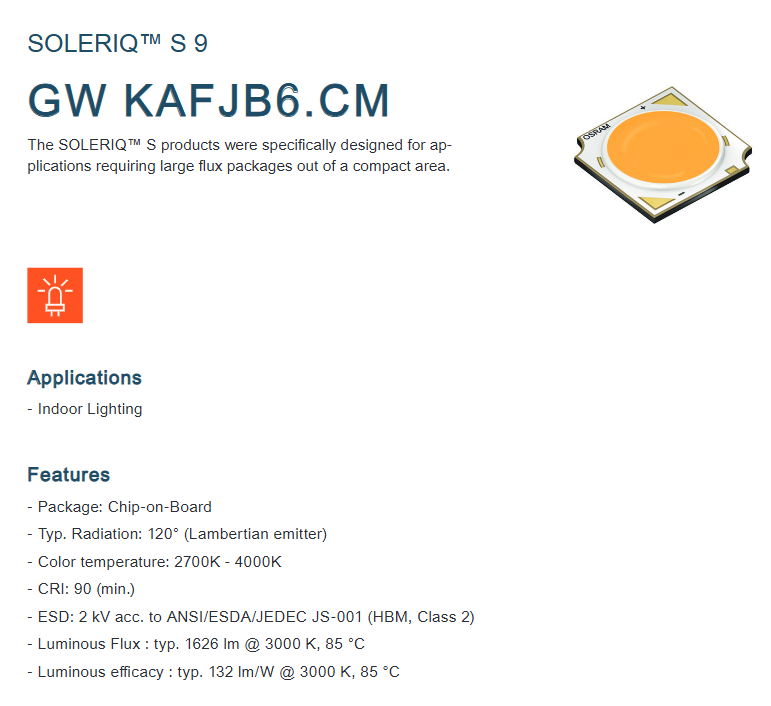 Resaltar OSRAM SOLERIQ S 9 GW KAFJB6.CM Serie CRI90 1800LM 12W Chip Led Cob 2700K 3000K 4000K