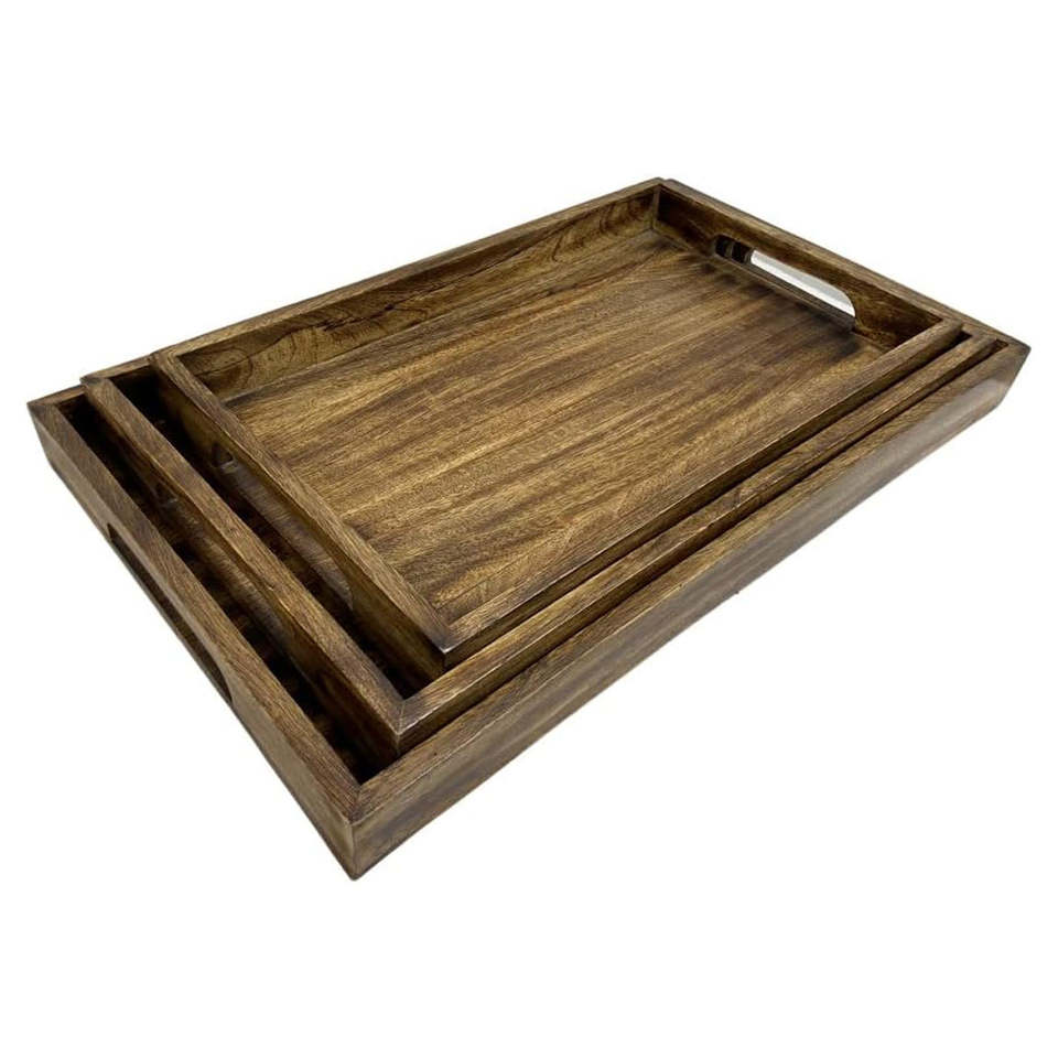 Bandeja de Servicio de Madera de 3 Piezas Muy Demandada - Diseño Moderno, Duradera, Apta para Lavavajillas, Uso en Restaurantes, 50 Piezas, ARTESANÍA ATEMPORAL