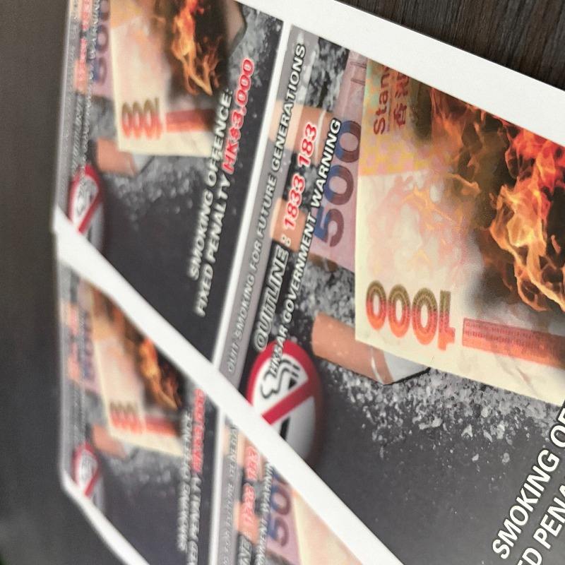 Etiquetas de advertencia de salud impresas personalizadas altamente efectivas, pegatinas promocionales antitabaco para materiales de embalaje de tabaco