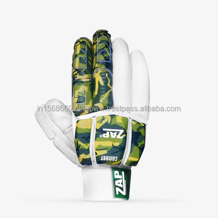Guantes de Críquet ZAP Combat Hechos a Medida de Doble Capa de Cuero y Tela con Cierre de Velcro de Liberación Rápida, Altamente Protectores y Ventilados