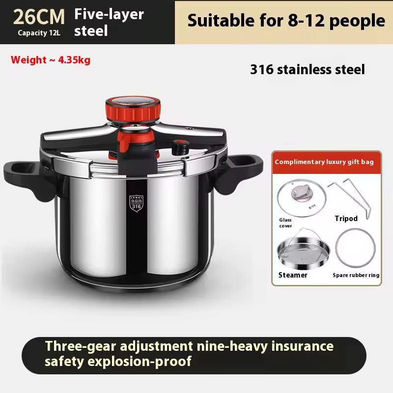 Olla de Acero Inoxidable 316 de Alta Calidad para Cocina de Gas e Inducción, Utensilios de Cocina a Prueba de Explosiones, Olla a Presión de 10L