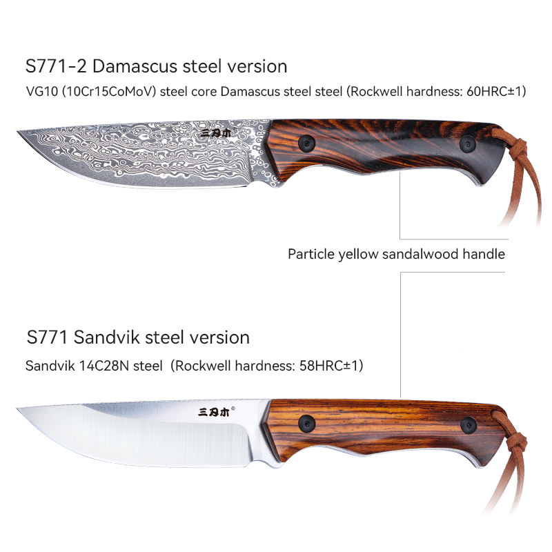 Sanrenmu S771 EDC de alta calidad, cuchillos de hoja fija para exteriores, cuchillo táctico de caza para acampar con funda, cuchillo recto