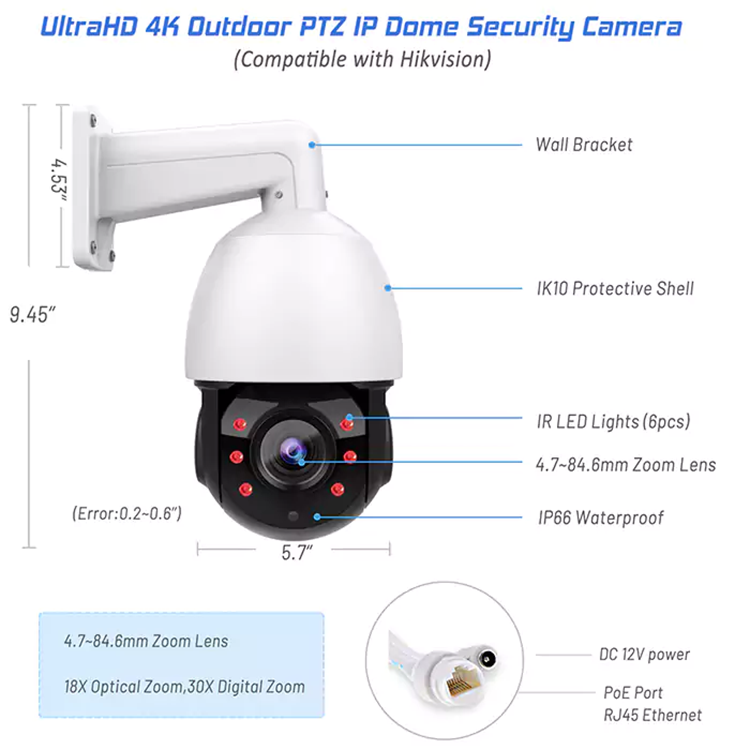 Hik compatible vigilancia de seguridad IP al aire libre 4K 8mp domo de velocidad seguimiento automático zoom óptico visión nocturna Poe cámara PTZ