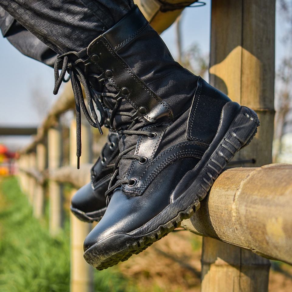 Botas de Senderismo Antideslizantes, Botas de Entrenamiento para Jungla, Botas Tácticas de Malla y Goma para Escalar, Botas Tácticas de Cuero PU de Caña Alta, Botas de Senderismo