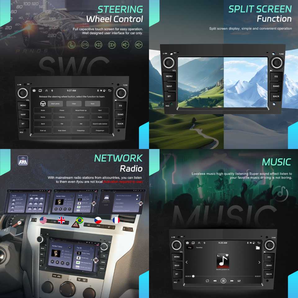 MANOS LIBRES, Estéreo, CarPlay, Android auto, Imagen en la imagen, Pantalla dividida, Administrador de archivos, Coche de Control de volante, MAPFunción