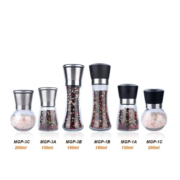 Frascos de vidrio del Himalaya con molinillo Botella de molinillo de sal rosa del Himalaya con tapa de cerámica Pimienta orgánica Tapa de plástico sal rosa