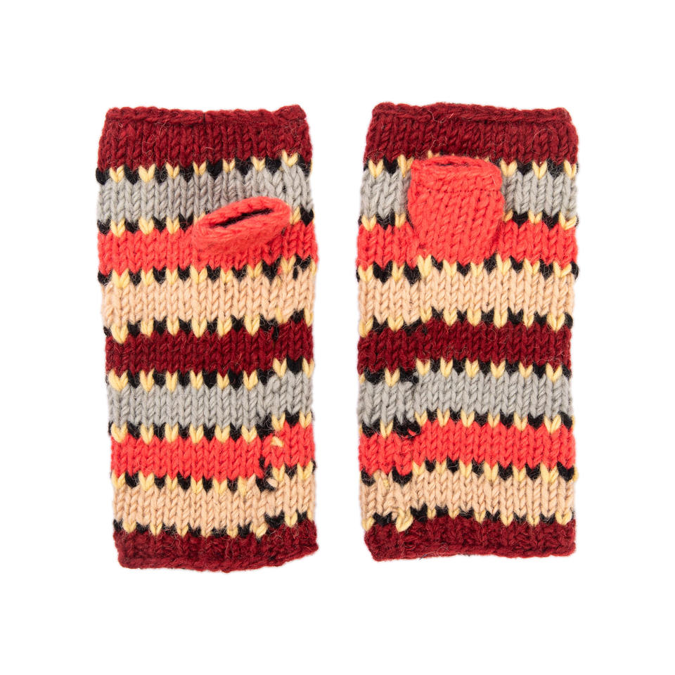 Guantes sin Dedos de Lana del Himalaya, Tejidos a Mano, con Forro Polar, Diseño a Rayas, para Clima Frío, Compatibles con Pantallas Táctiles