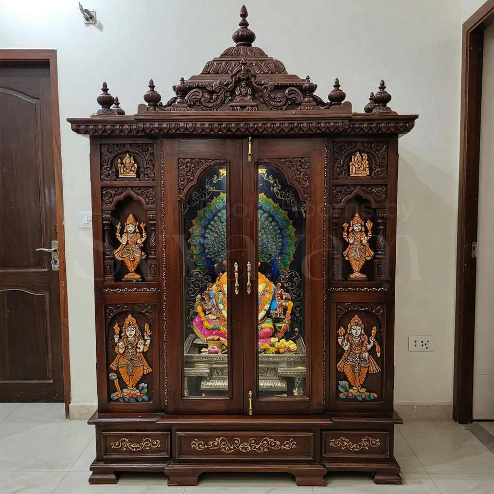 Product name:Hindu Mandir with Drawers and Rich Carving Work