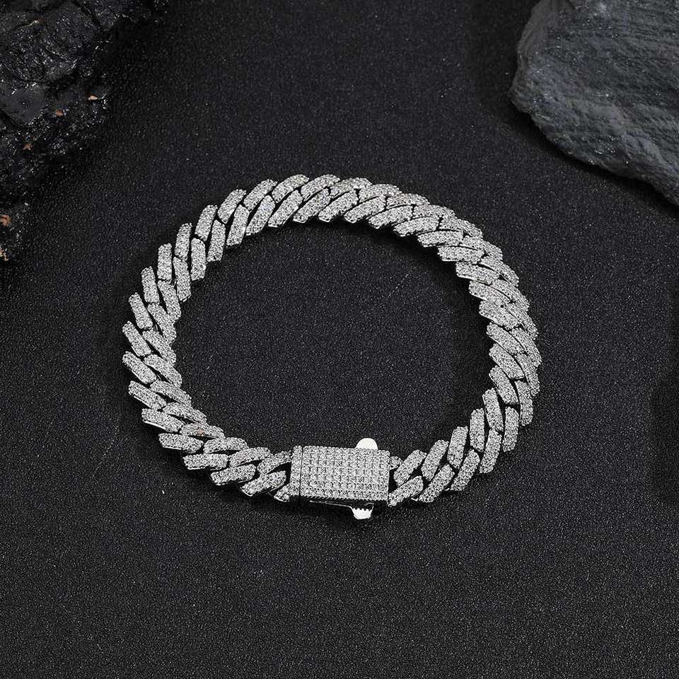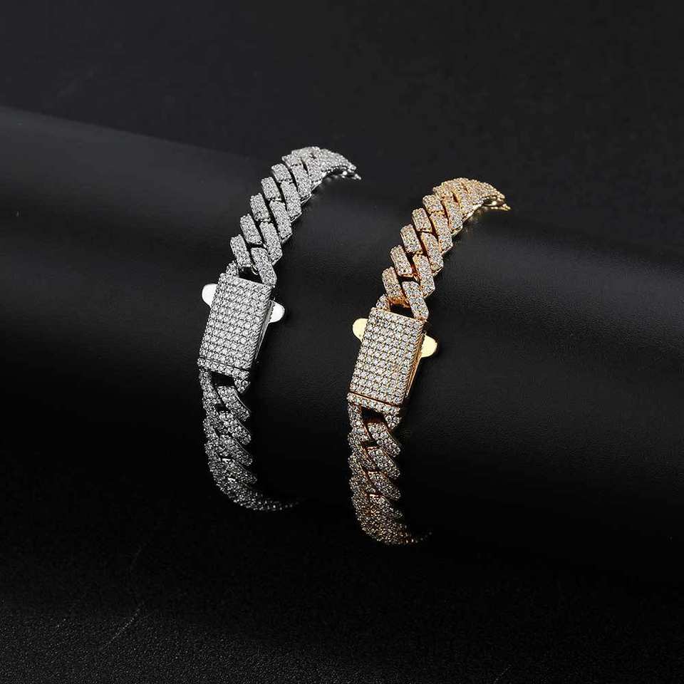 Pulsera de Joyería Cubana con Hebilla de Resorte de 8mm y Zirconia en Forma de Rombo, Estilo Hip Hop
