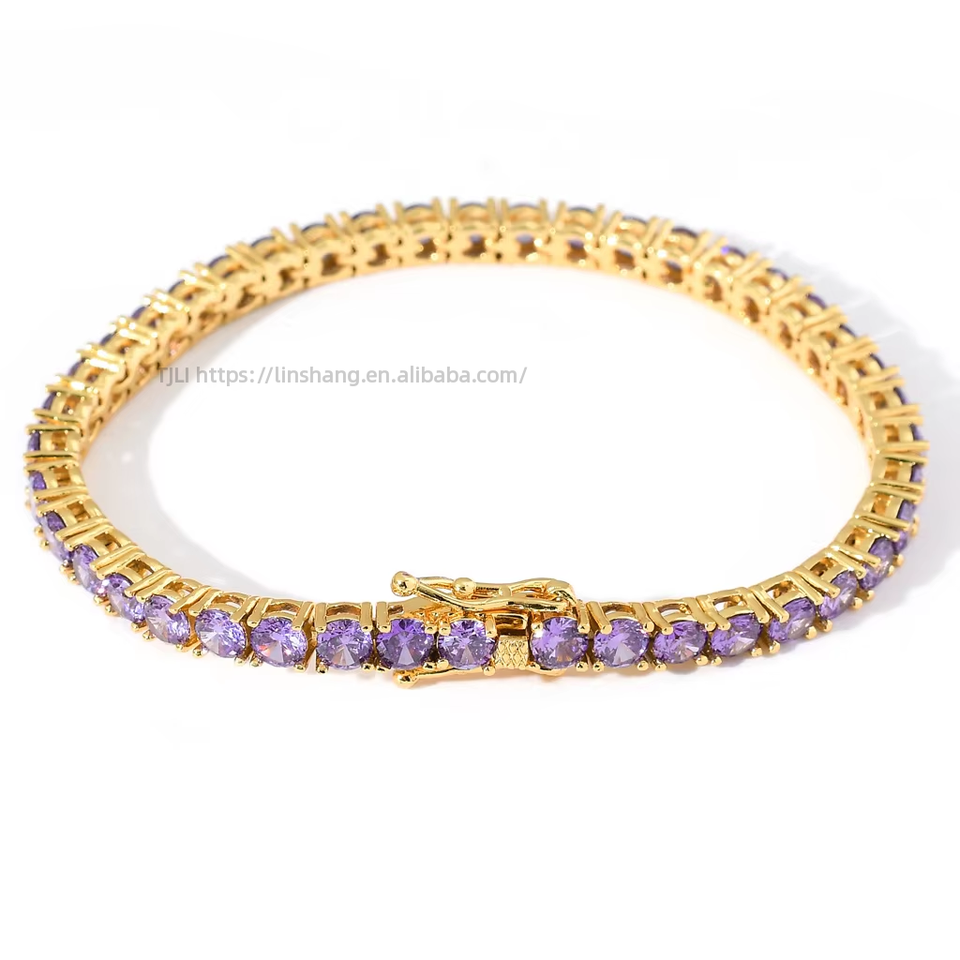 Pulsera Hip Hop de 4mm con incrustaciones de cobre y circonita, cadena de tenis, accesorios Hip Hop para parejas, collar de moda Tanjing Lijing
