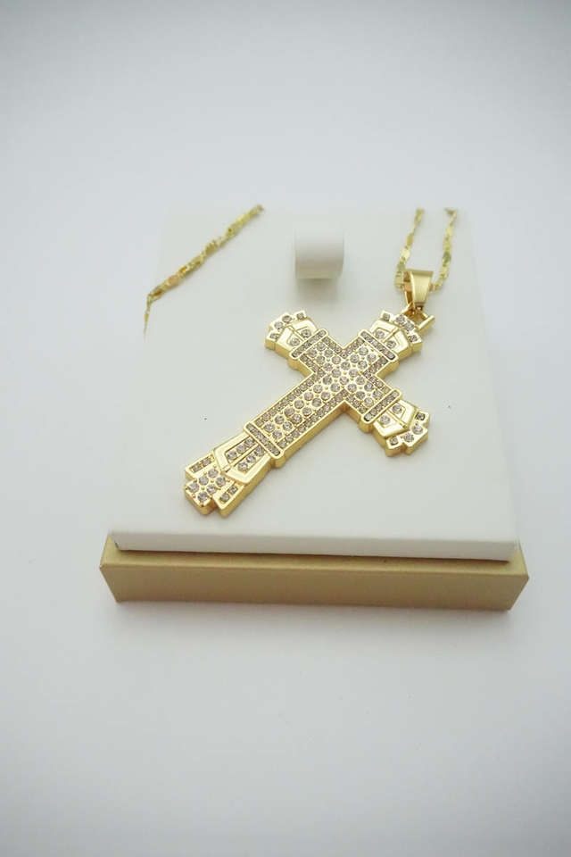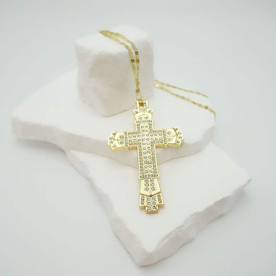 Collar con Colgante de Cruz Hip Hop, Diseño con Incrustaciones de Diamantes de Imitación, Joyería de Moda en Aleación, Accesorio Moderno y Brillante para Hombres y Mujeres
