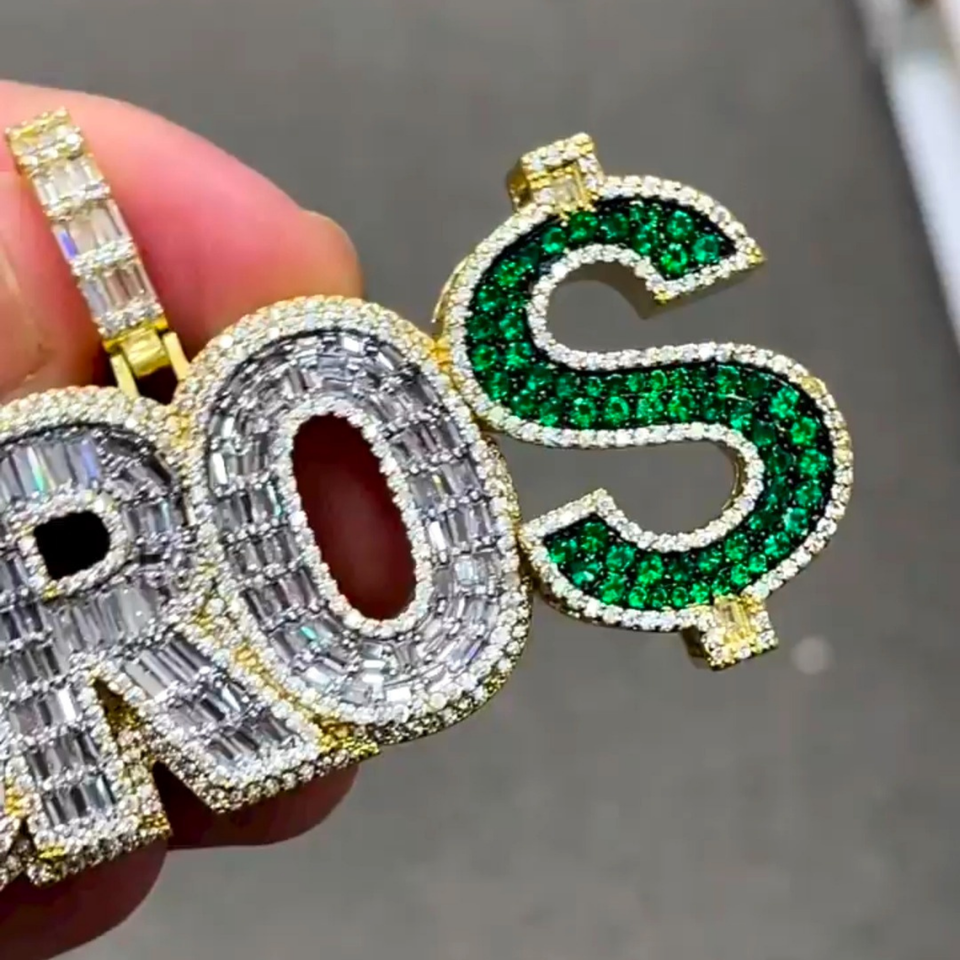Colgante de Moissanita con Corte Esmeralda Plateado Personalizado de Hip Hop, Chapado en Rodio de Plata de Ley 925, Dijes de Joyería Fina de Alta Calidad