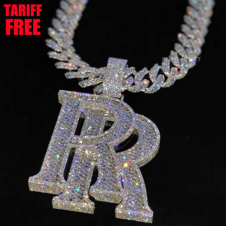 Collar Personalizado de Plata 925 con Letra Doble R Hip Hop, Diamantes Baguette VVS y Moissanita, Cadena y Colgante de Joyería Personalizada Iced Out