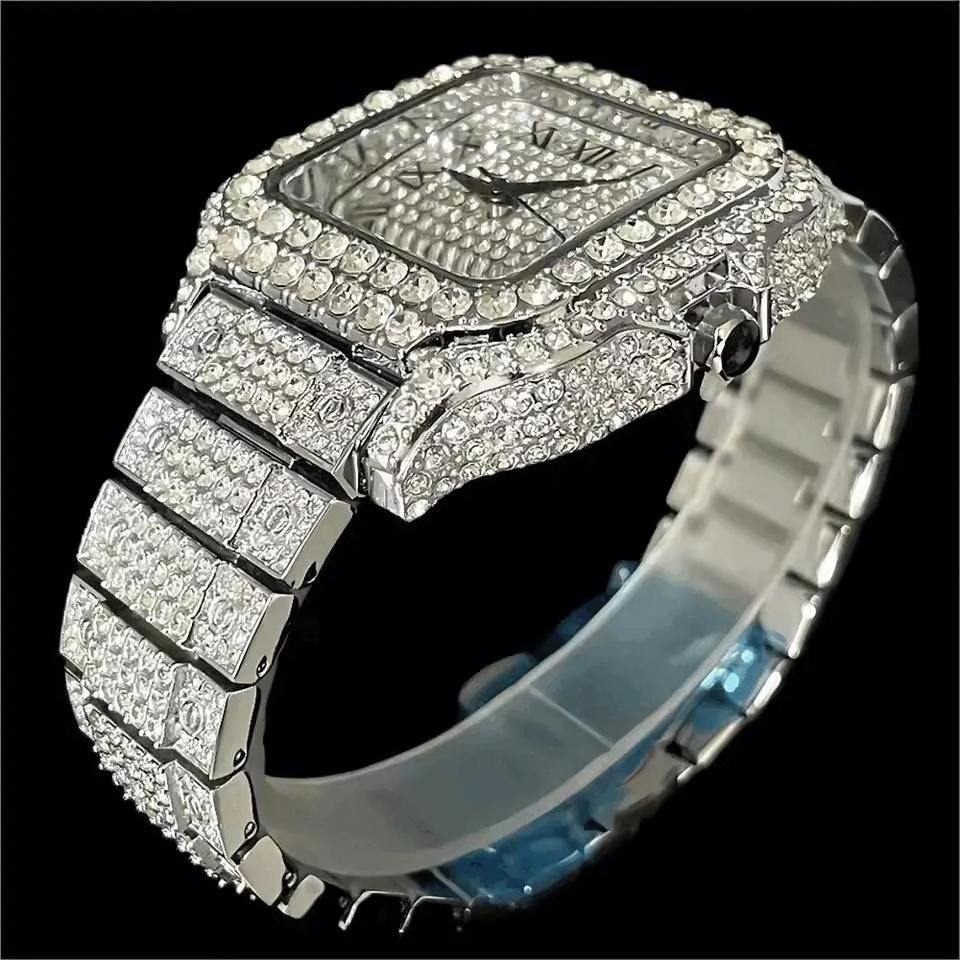 Reloj de Hombre Estilo Hip Hop con Cristales Brillantes | Reloj de Moda con Esfera Analógica de Cuarzo, Correa de Aleación y Diamantes de Imitación