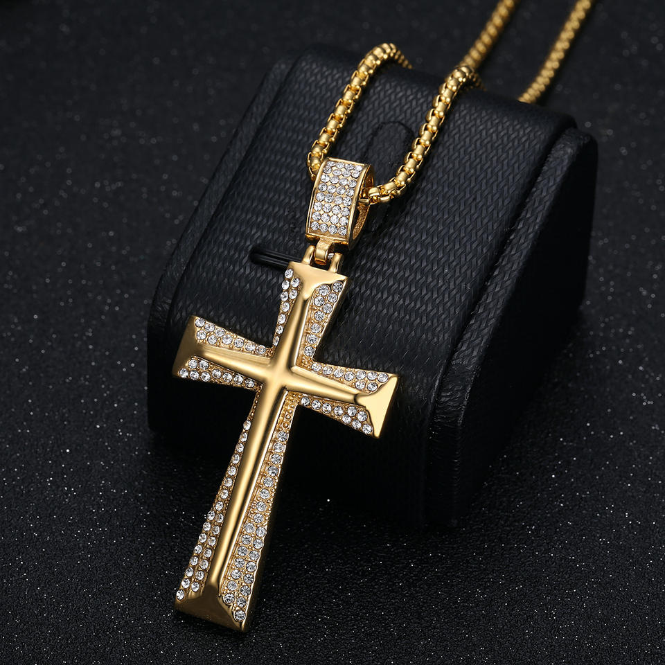 Hip Hop Iced Out CZ Cruz religiosa cristiana impermeable sin deslustre joyería de acero inoxidable colgante collares hombres 2025 nuevo