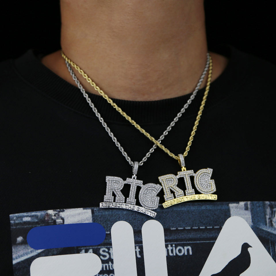 Collar con Colgante de Letras 'Respect the Ghetto' Estilo Hip Hop con Circonitas Cúbicas para Hombre y Mujer, Joyería Gótica con Cadena Larga