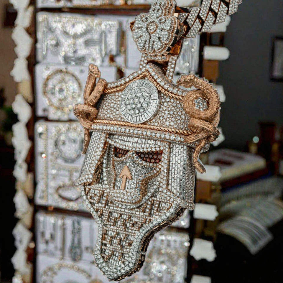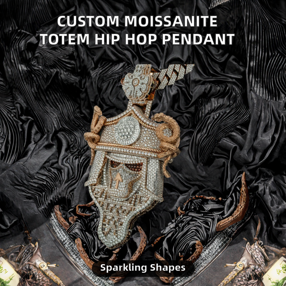 Colgante de Máscara de Samurái Hip Hop Iced Out con Moissanita, Guerrero, Plata de Ley Chapada en Oro, Joyería de Lujo para Hombre, Estilo Bling Rapper