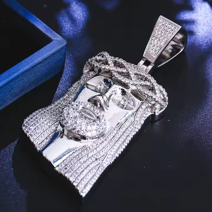 Elegante Colgante Hip Hop Iced Out con Diseño de Jesús, Plata 925, Chapado en Plata, Moissanita, Joyería Unisex
