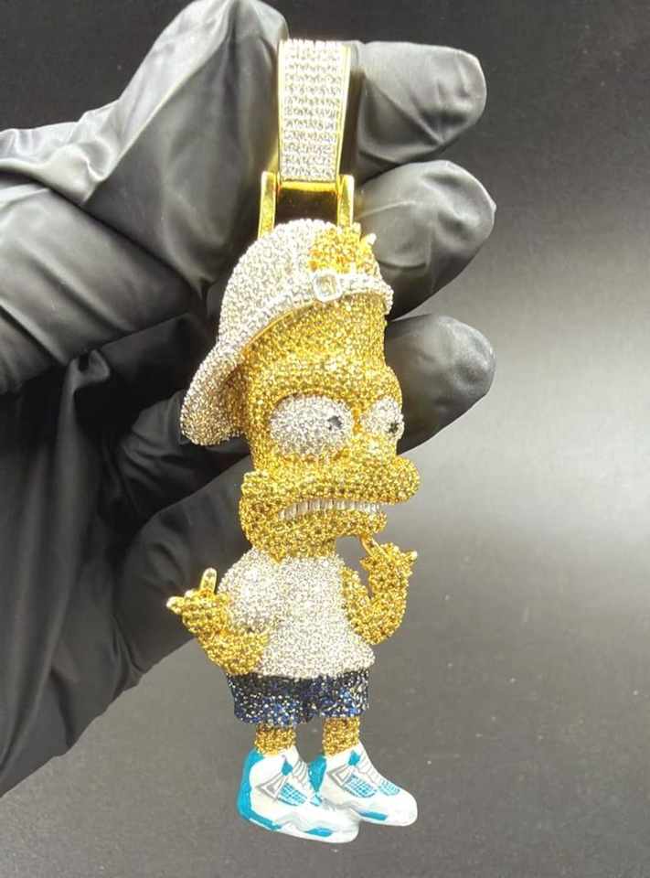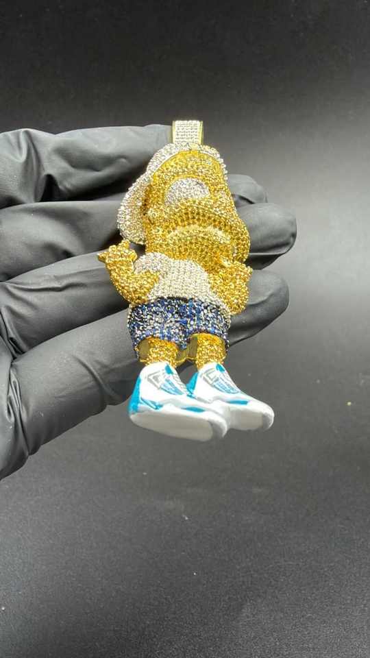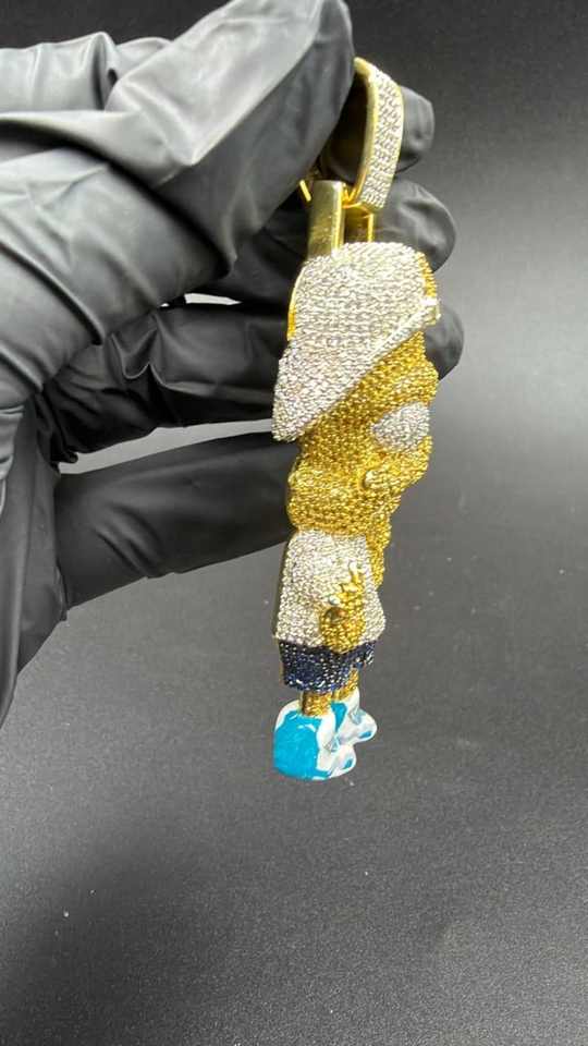Colgante de Lujo Unisex de Plata 925 con Moissanita Multicolor y Personajes de Dibujos Animados 3D, Estilo Hip Hop, Joyería Iced para Fiesta, Bling de Rapero