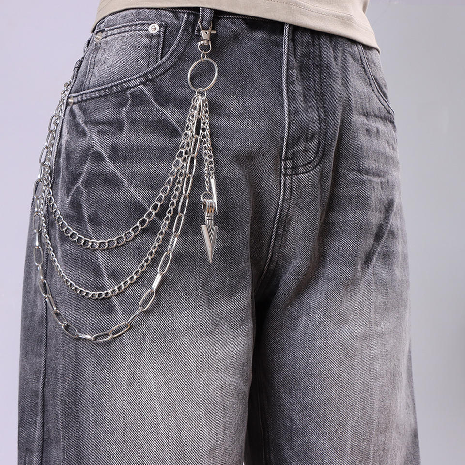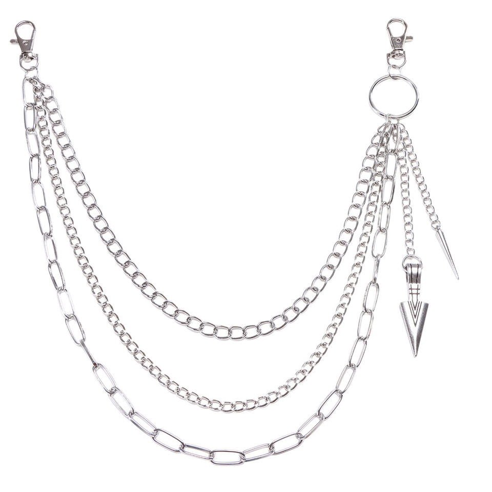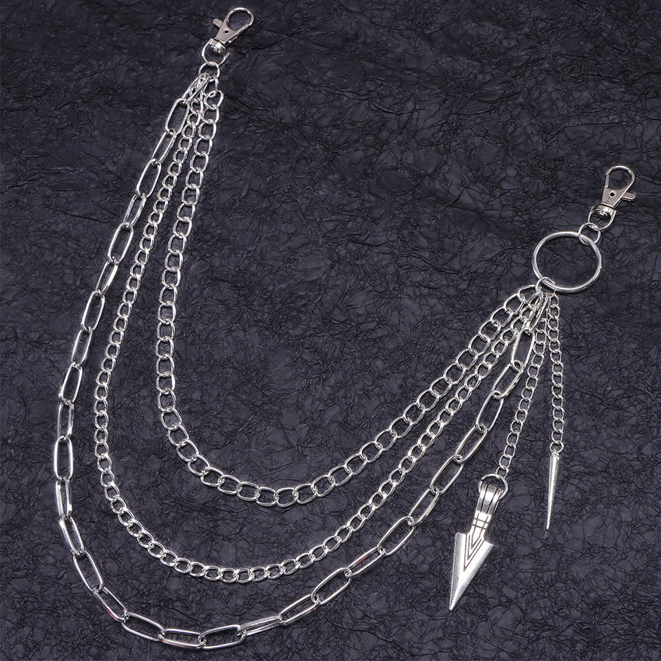 Cadena de cintura de múltiples capas estilo Hip Hop Punk Metal con colgante de flecha para hombres y mujeres, accesorio de moda para pantalones.