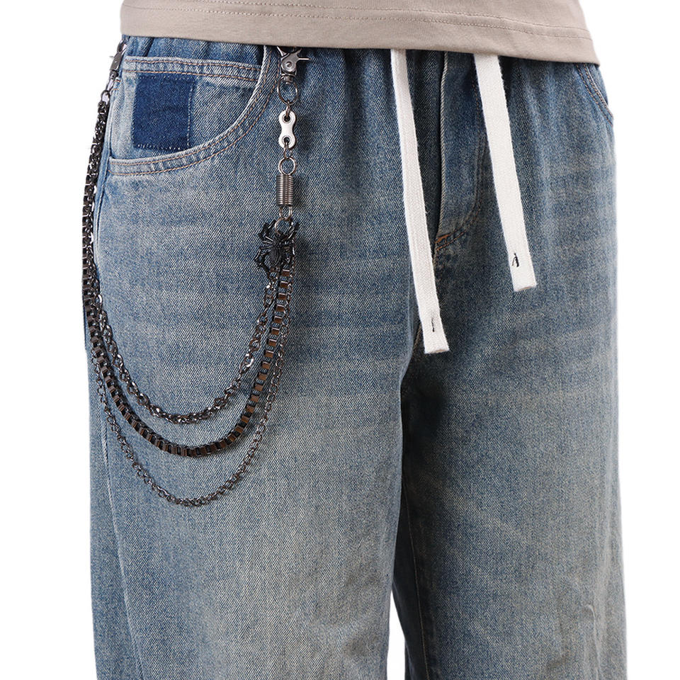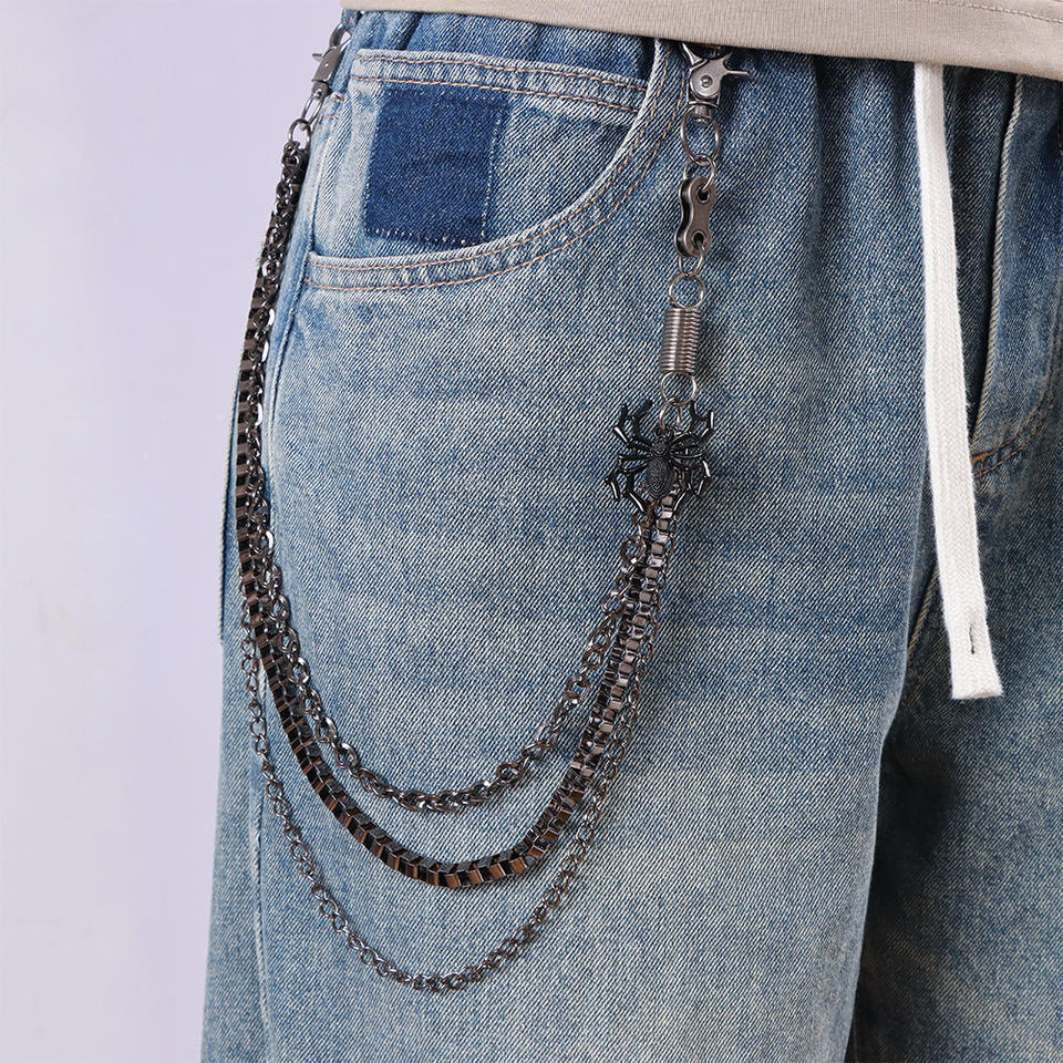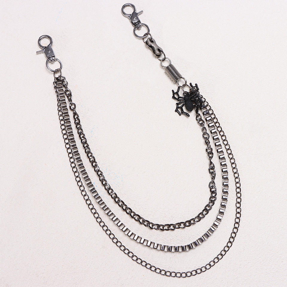 Cadena de cintura de múltiples capas estilo hip hop, punk y metal con colgante de araña para jeans, accesorio de moda urbana.