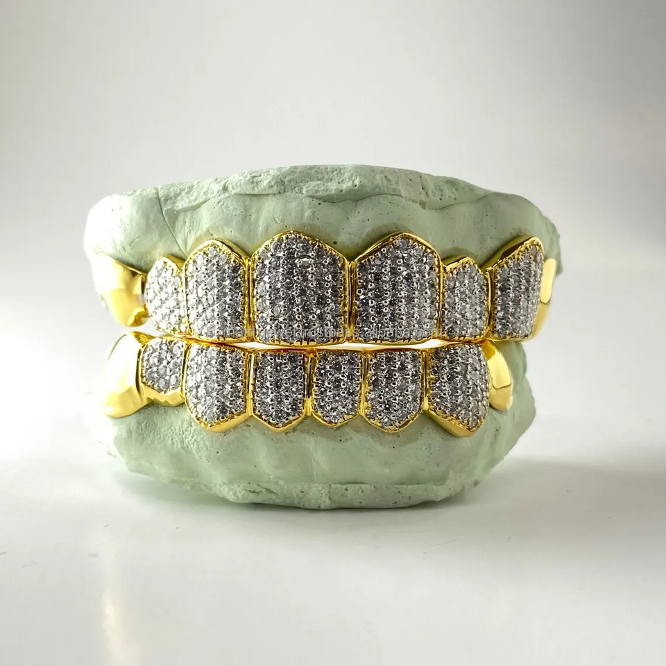 Grillz de Dientes Personalizados para Raperos de Hip Hop, Plata de Ley 925, para Hombre, Totalmente Cubiertos de Moissanita, Certificado por Diamantínmetro